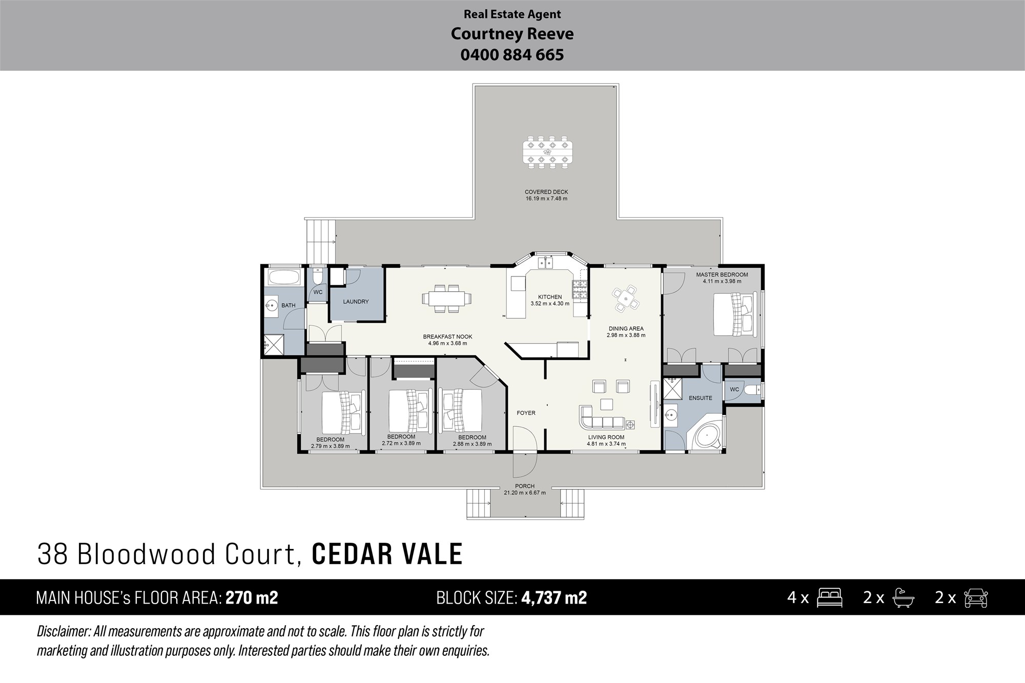 * Inviting front and rear verandahs plus a spacious entertaining deck complete with roller blinds for comfort year-round