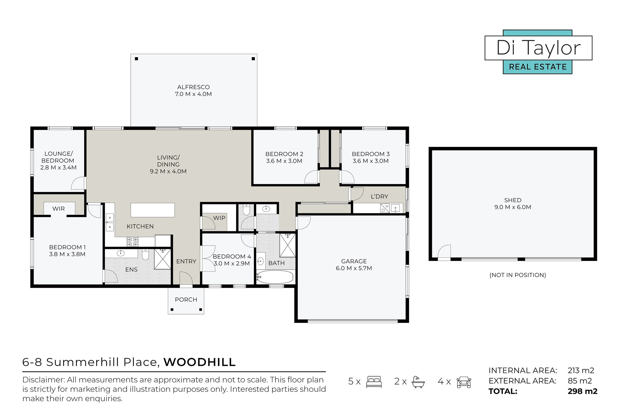 Set on an elevated, fully fenced 1-acre block (5811m2) in the sought-after Summerhill Place enclave of Woodhill, this gorgeous modern home offers the perfect environment for families to grow, relax and make lifelong memories. With full pressure town water, multiple living options and outstanding outdoor space, this property delivers the ultimate family acreage lifestyle — just 10 minutes from Jimboomba township.Designed with family living in mind, the light-filled open plan lounge and dining area connects effortlessly to the covered outdoor entertainment space, creating a welcoming hub for everyday living, weekend barbecues and long summer afternoons while the kids and pets enjoy the space to run and play.Property Highlights:* Spacious open plan living and dining with air-conditioning and seamless indoor/outdoor flow* Stylish family kitchen with gas cooktop, stainless steel appliances, stone benchtops and walk-in pantry* Private master retreat with air-conditioning, walk-in robe and floor-to-ceiling tiled ensuite* Four additional bedrooms offering flexibility for growing families:* Two with built-in robes* One with direct access to the main bathroom* Fifth bedroom ideal as a bedroom, study or additional living space* Modern main bathroom with separate toilet and powder area* Generous family-sized laundry with excellent storage* Double lock-up garage with internal access* Ceiling fans throughout all bedrooms, living areas and outdoor entertaining zone* Air-conditioning to the open plan living area and master bedroom* Fully screened with roller blinds throughout and curtains to selected rooms* Covered outdoor entertainment area with large ceiling fan — perfect for family gatherings* Impressive triple bay powered shed with two remote-controlled roller doors plus PA door* Separate concrete driveway and private access to the shed* Elevated 1-acre block with a usable, family-friendly layout* Full pressure town waterA rare opportunity to secure a quality family home in a tightly held location — offering space, comfort and a lifestyle your family will love for years to come.Disclaimer:All information provided has been obtained from sources we believe to be accurate, however, we cannot guarantee the information is accurate and we accept no liability for any errors or omissions (including but not limited to a propertys land size, floor plans and size, building age and condition). Furthermore, any stated areas, measurements, times, and distances are approximate only and any boundary outlines in photos are indicative only. Interested parties should make their own enquiries in relation to the property, and as to the accuracy of any information provided, and should obtain their own legal advice.